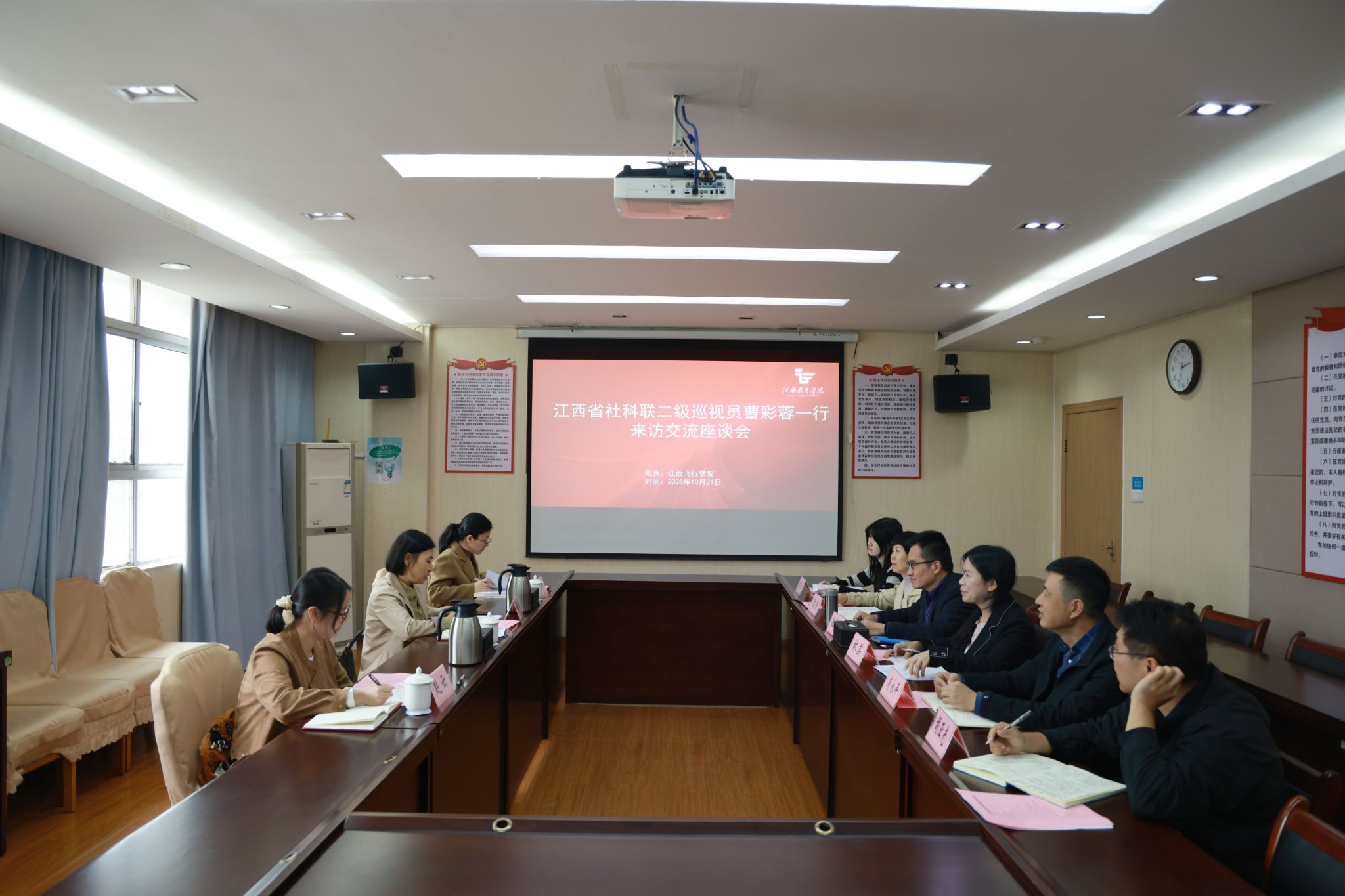 10月21日下午,江西省社科联二级巡视员曹彩蓉、学术中心主任姚婷一行来校调研指导。校科研处负责人陪同调研并主持座谈。
