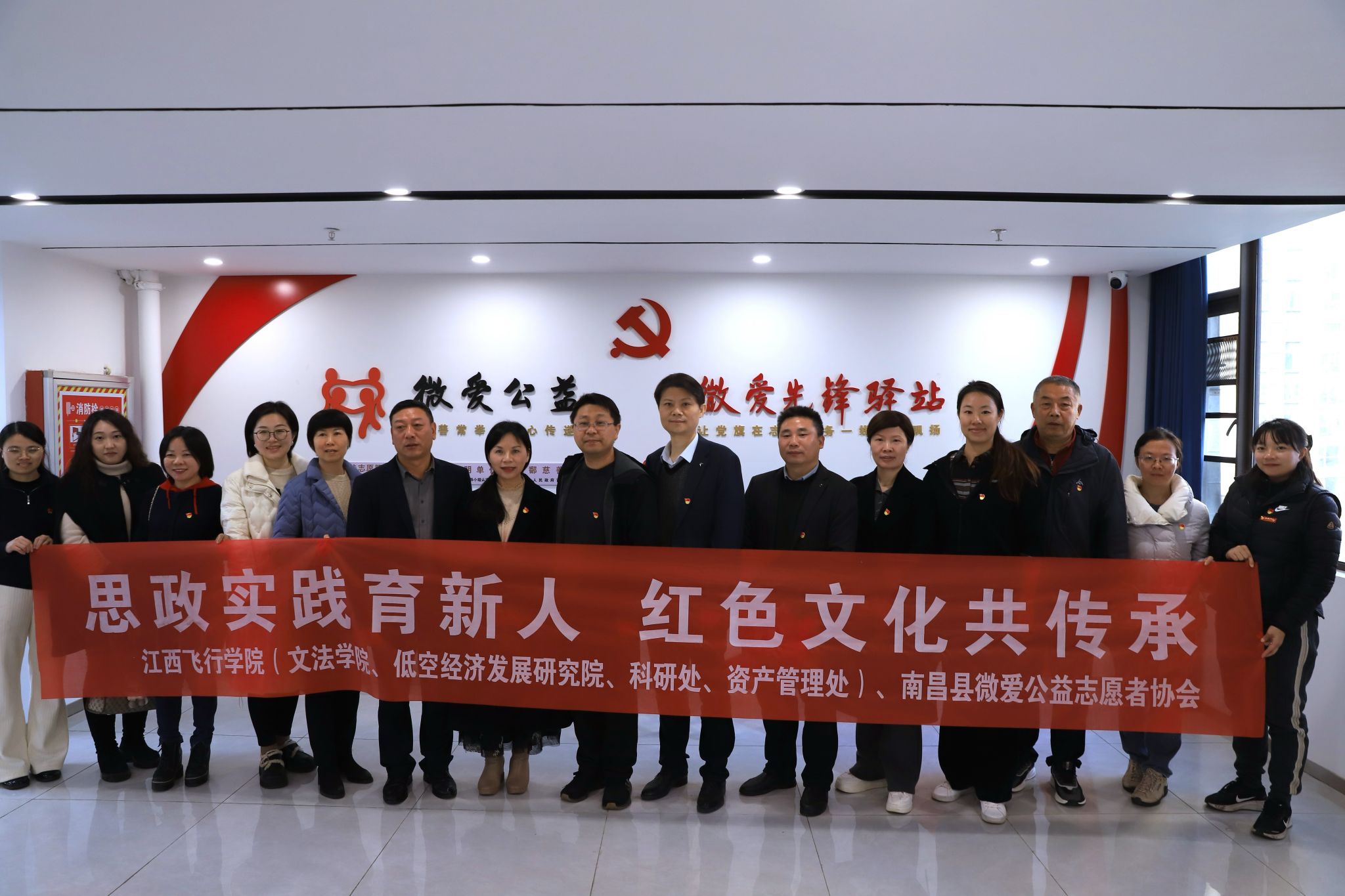 12月17日下午,机关第十五党支部联合文法学院、低空经济发展研究院和资产管理处,组织教工党员、学生党员代表、航空文化协会、赣文化交流协会、青年普法协会、红色故事英语宣讲队和红色班级成员,前往南昌县微爱公益志愿者协会开展以“思政实践育新人、红色文化共传承”为主题的党日活动,并举行“大思政课”实践教育基地揭牌仪式。